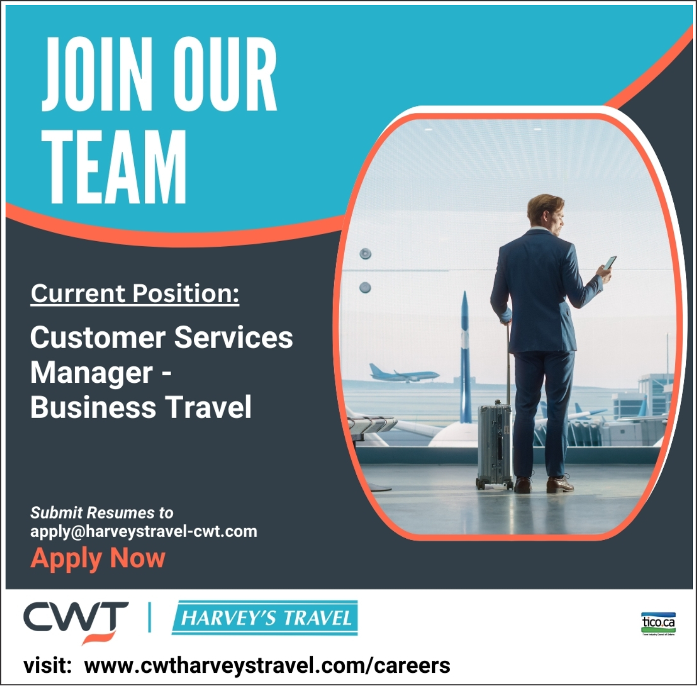 Submit Resumes to apply@harveystravel-cwt.com