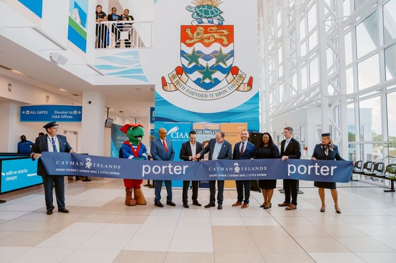 A ribbon-cutting ceremony marked the first time Porter has operated service to the Cayman Islands.