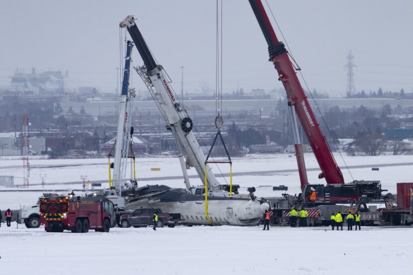 Lead image caption: Cranes are positioned to remove the wreckage of Delta Flight 4819 from the runway at Toronto Pearson International Airport, in Mississauga, ON, on Feb. 19, 2025 (THE CANADIAN PRESS/Arlyn McAdorey)