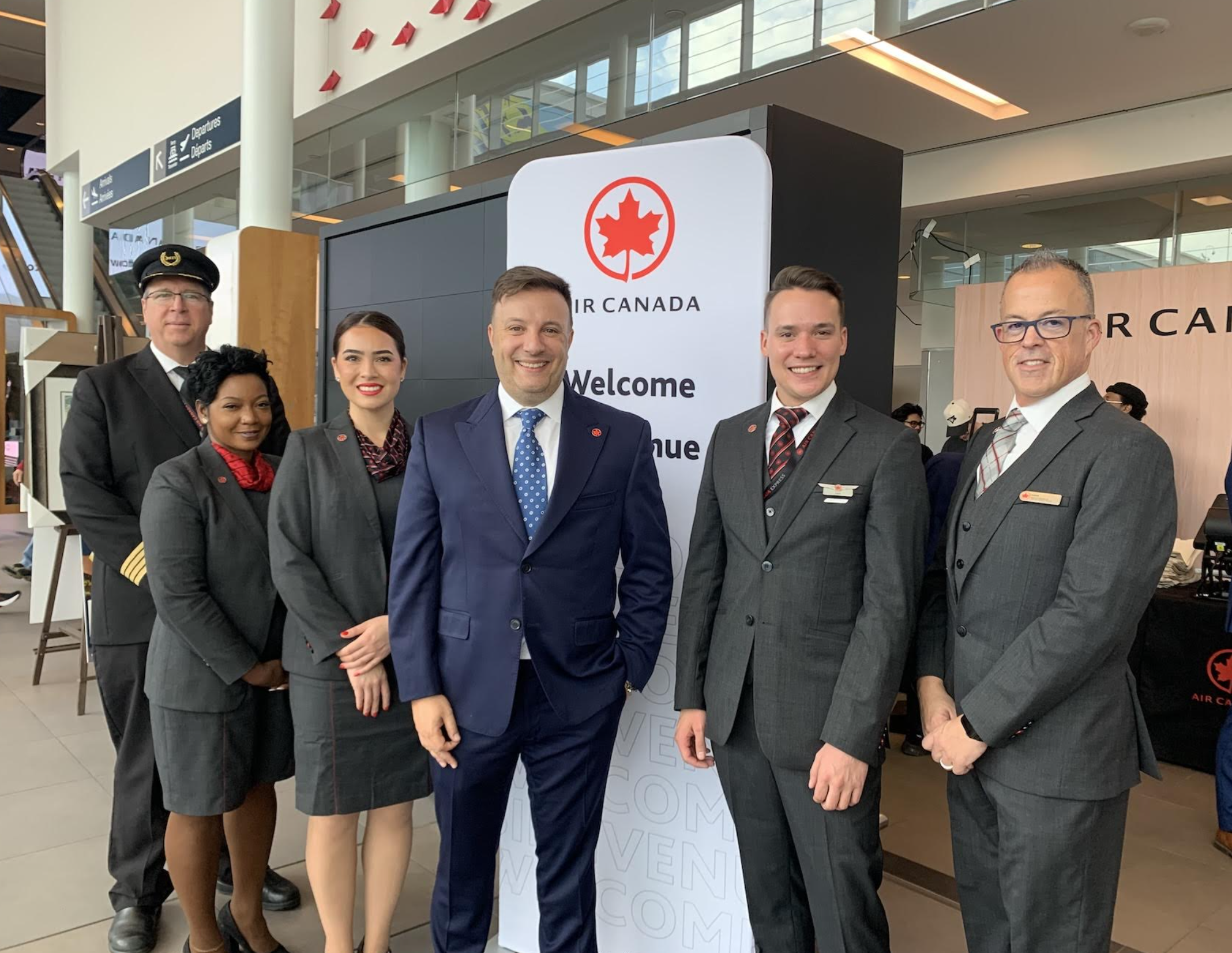 Air Canada’s Mark Galardo is all smiles with Air Canada crew. Air Canada’s major expansion at Billy Bishop Toronto City Airport, with service to New York-LGA, Boston, Chicago and Washington DC, is set to launch in spring 2026