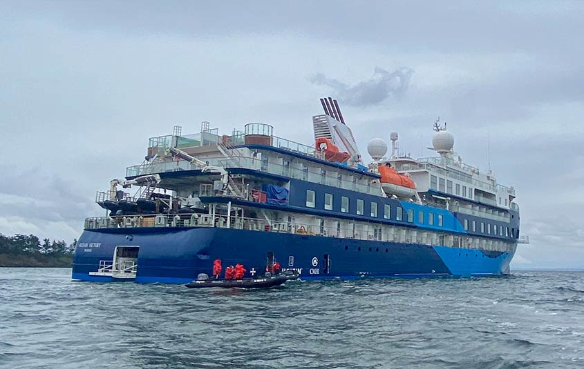 Ocean Victory sails 12- and 13-day itineraries between Vancouver, B.C. and Sitka, AK from May through September for American Queen Voyages. The ship will winter in Antarctic under the Albatros brand.