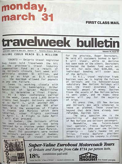 TORONTO — For this edition of ‘It Happened This Week’, the failure of a major tour operator made Travelweek’s front page for 3 issues, all within a week and a half, in late March and early April.
