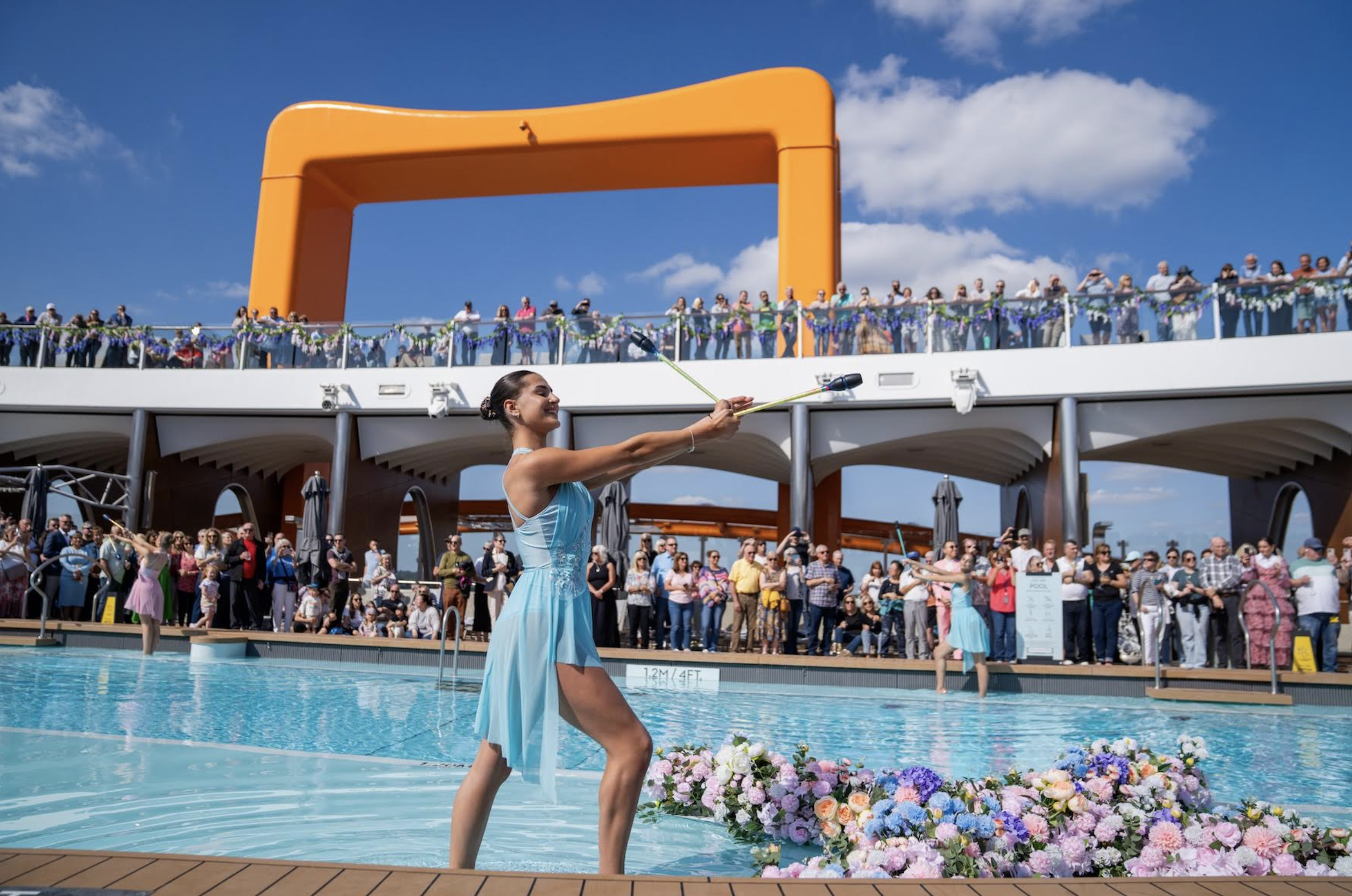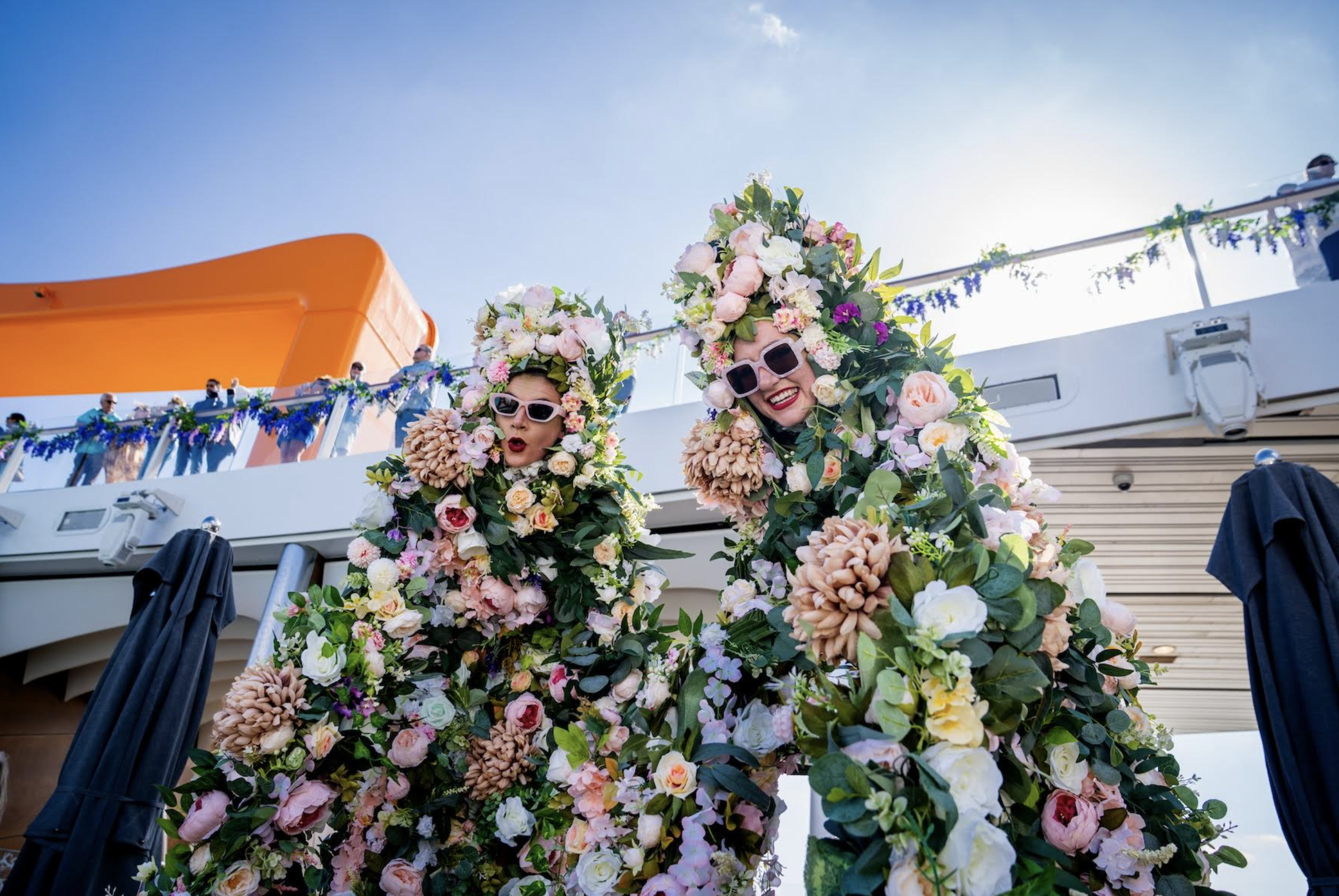 Next up, a floral sail away made the ship’s departure bloom with a garden party on the Resort Deck, complete with a Beatles tribute band and acrobatic performances.