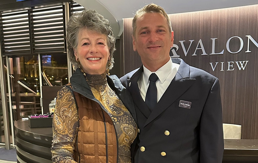 - Vanessa Lee with the Captain of Avalon Waterways’ Avalon View, Oct. 2023