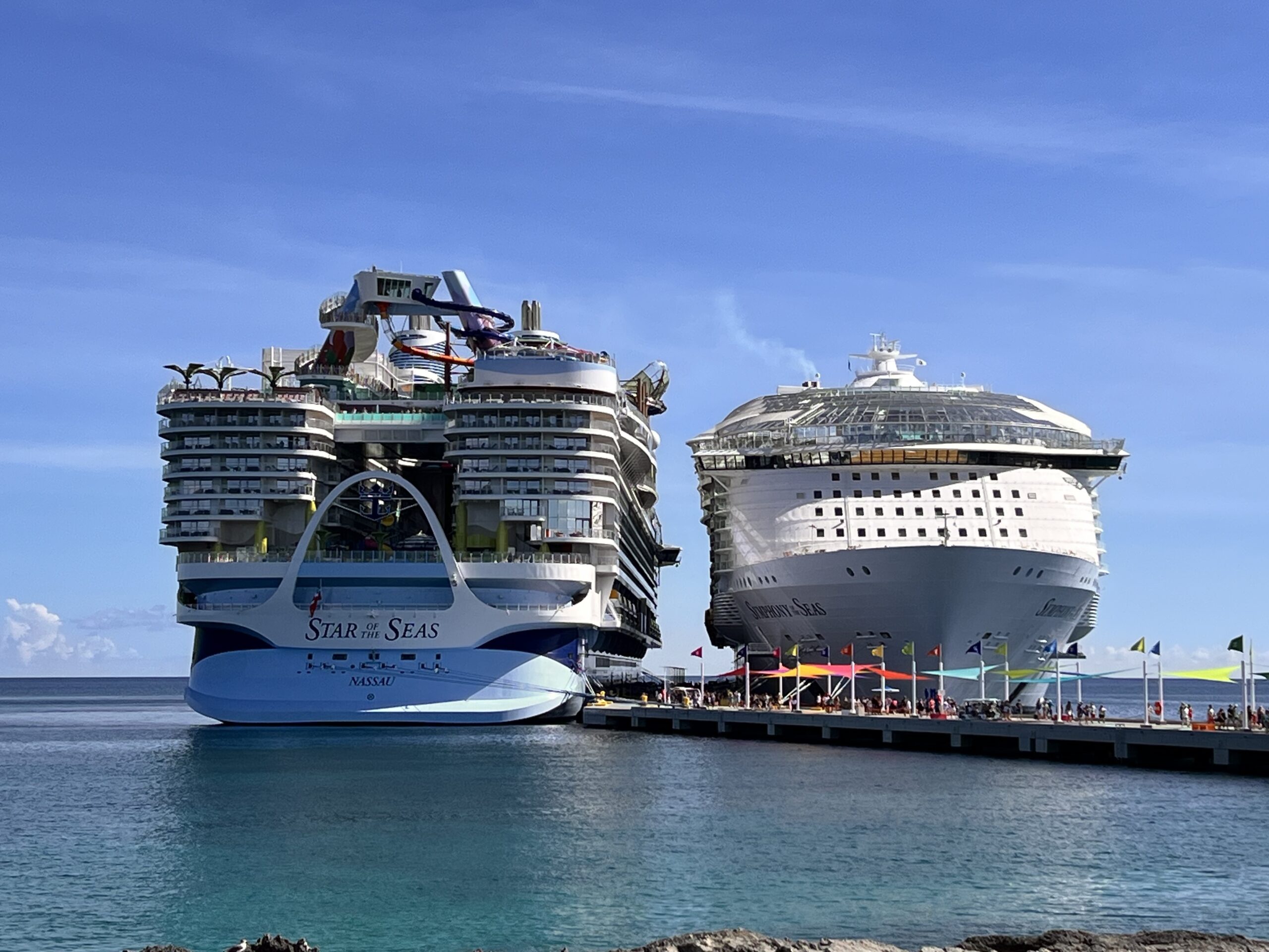 - Star of the Seas berthed alongside Symphony of the Seas at Perfect Day at Coco Cay-Credit Toby Saltzman