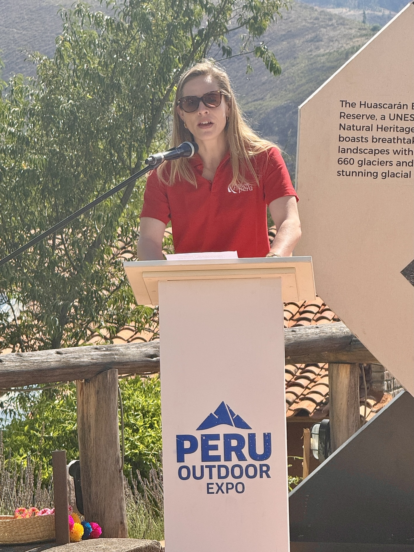 - Maria del Sol Velasquez, Tourism Director of Promperu, speaks at the opening of the first-ever Peru Outdoor Expo