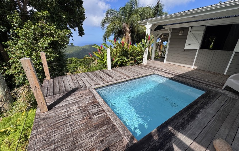 Perched atop a ridge, these cottages and villas are little gems of Creole charm, built entirely of wood, with a small private pool, a four-poster bed (sometimes), a veranda with breathtaking views, flowery surroundings and total tranquility – only the croaking of frogs and the rustling of cicadas provide background noise, when the rain drums peacefully on the roofs.