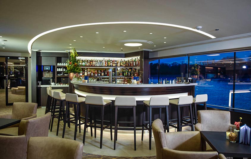 The ship’s stern features the Club Lounge, open all day to passengers to access self-serve coffee or tea drinks, infused chilled water, fresh baked cookies and sweet treats. It’s a quiet place to read, gaze at the river or borrow a board game or book. The stateroom entertainment system is also fully-loaded with the latest films too.