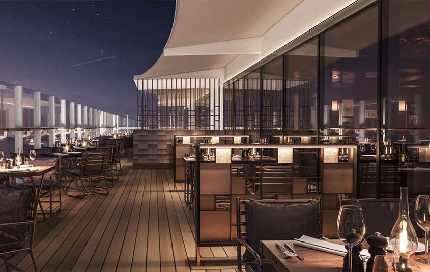 - Chef’s Court, comprised of five specialty restaurants, will be moved to Deck 8, allowing for better views of the sea as well as first-time outdoor seating at Butcher’s Cut steakhouse