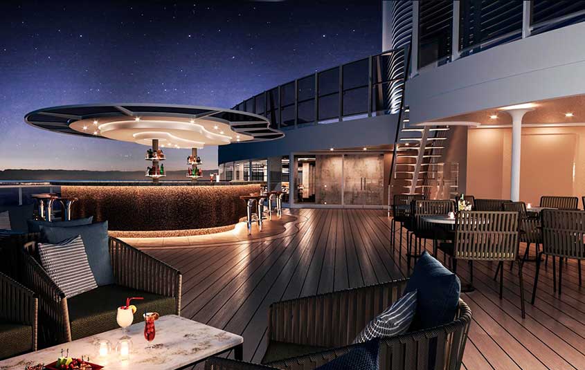 - There will be a total of 13,000 square metres of outdoor space with a wide choice of outdoor bars and dining and a deck area for sunbathing