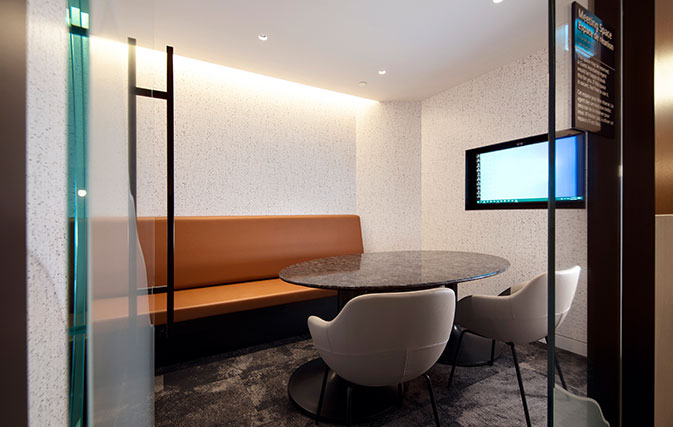 • One-way glass viewing window to allow guests to people watch without being watched themselves by those passing in the terminal
