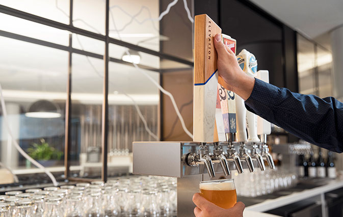 WestJet’s brand new Elevation Lounge – the airline’s flagship airport lounge and its first-ever in the world – is set to make its grand debut on Nov. 2 at YYC. Spanning over 9,300 square feet and available to guests departing on both international and domestic flights, the contemporary space features an array of glittering amenities, including an impressive horseshoe-shaped bar where premium guests can enjoy six beers on tap, three of which are locally brewed, one of which is WestJet’s very own ‘Elevation’ beer.