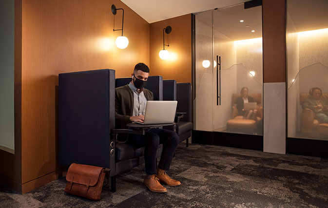 • Many of WestJet’s enhanced health and safety measures have been implemented in the lounge as part of its Safety Above All program, including: contactless self-serve entry; mandatory face masks (except when eating and drinking); plexiglass shields at high-interaction areas; and electrostatic spraying