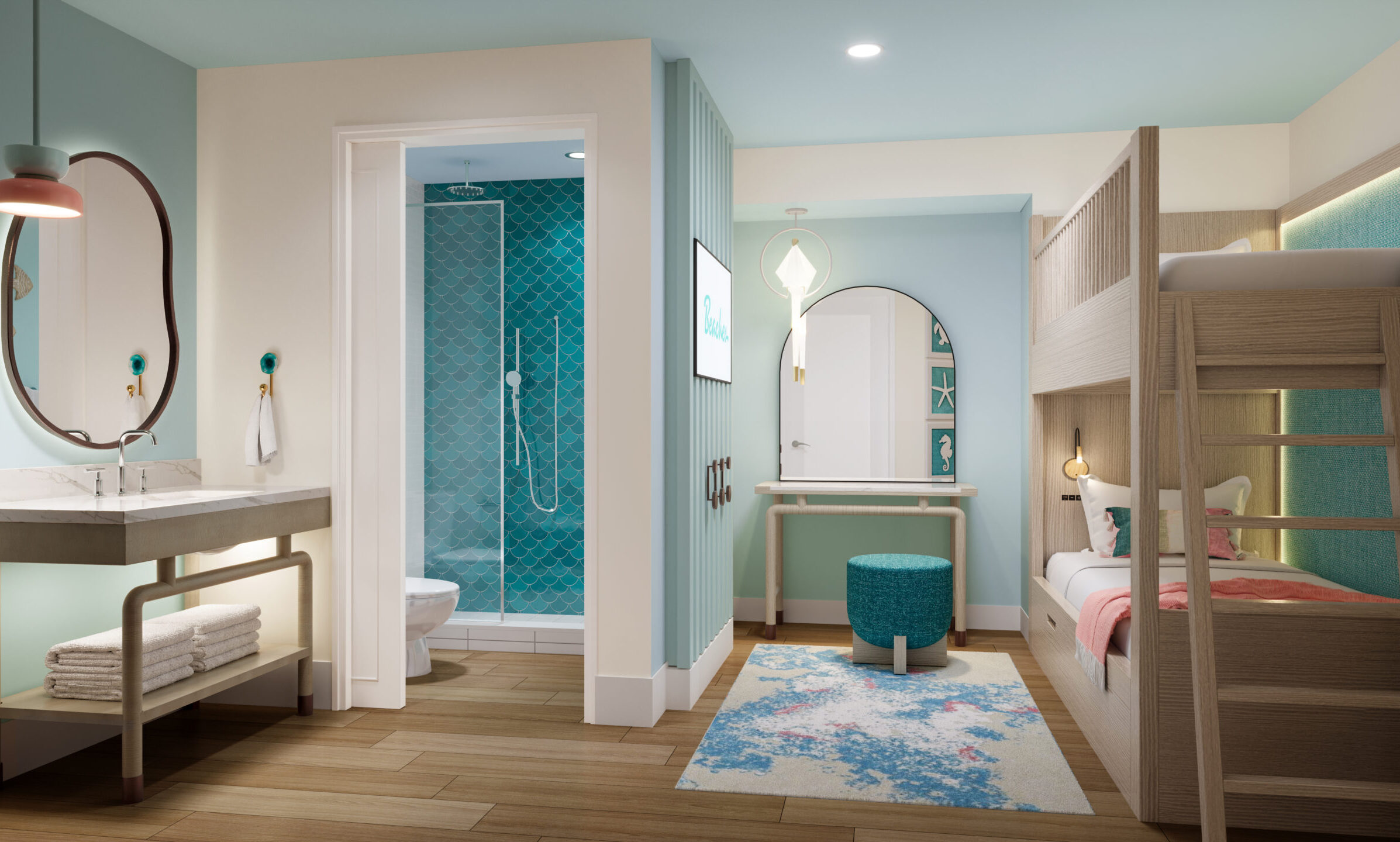Other family-friendly suites include two- and three-bedroom options with modern bunk beds, spacious kitchens and open-air living rooms designed to bring the outdoors in. Select accommodations will feature home-style amenities such as a washer and dryer, wine cooler and outdoor gas cooktop.