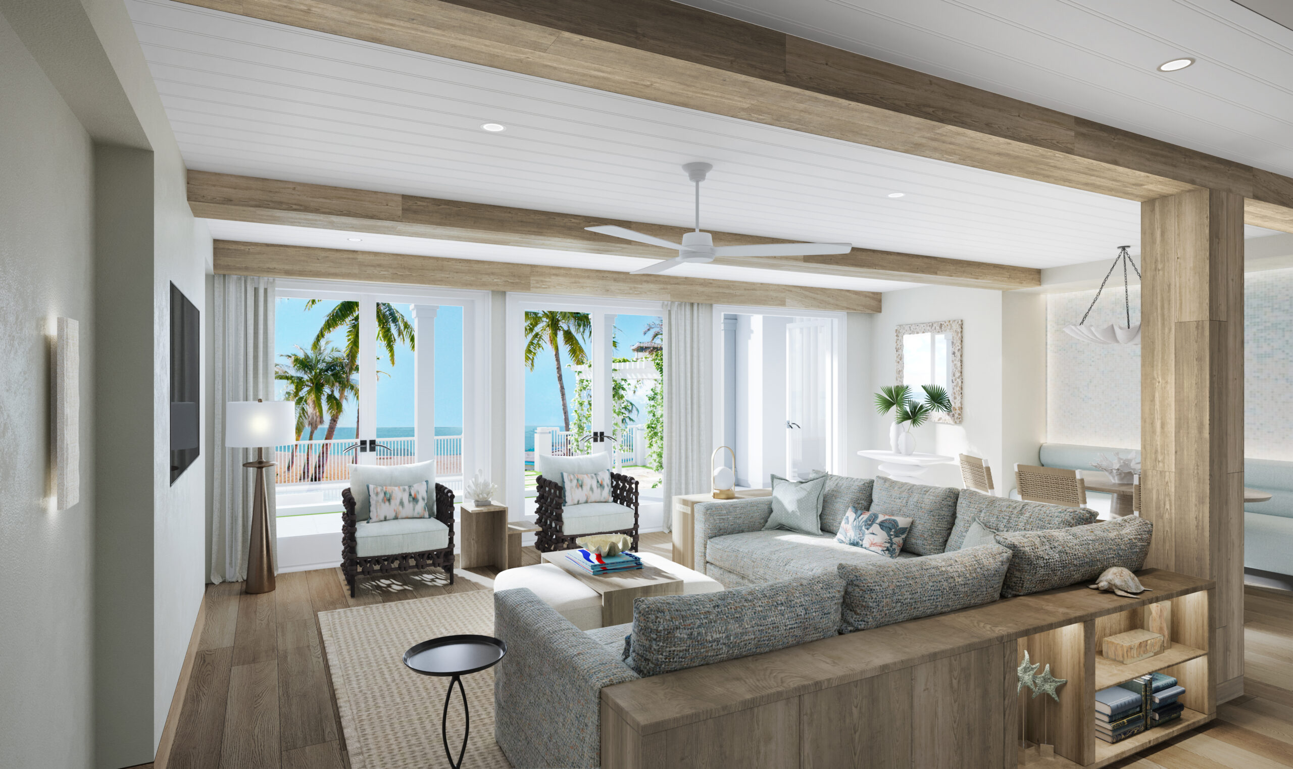 Situated along a half-mile stretch of Grace Bay’s pristine waters, the 100-acre beachfront Treasure Beach Village will feature a 15,000-square-foot infinity-edge pool, new dining options including a ‘food hall’ concept, and family-friendly amenities such as a 32-seat cinema.