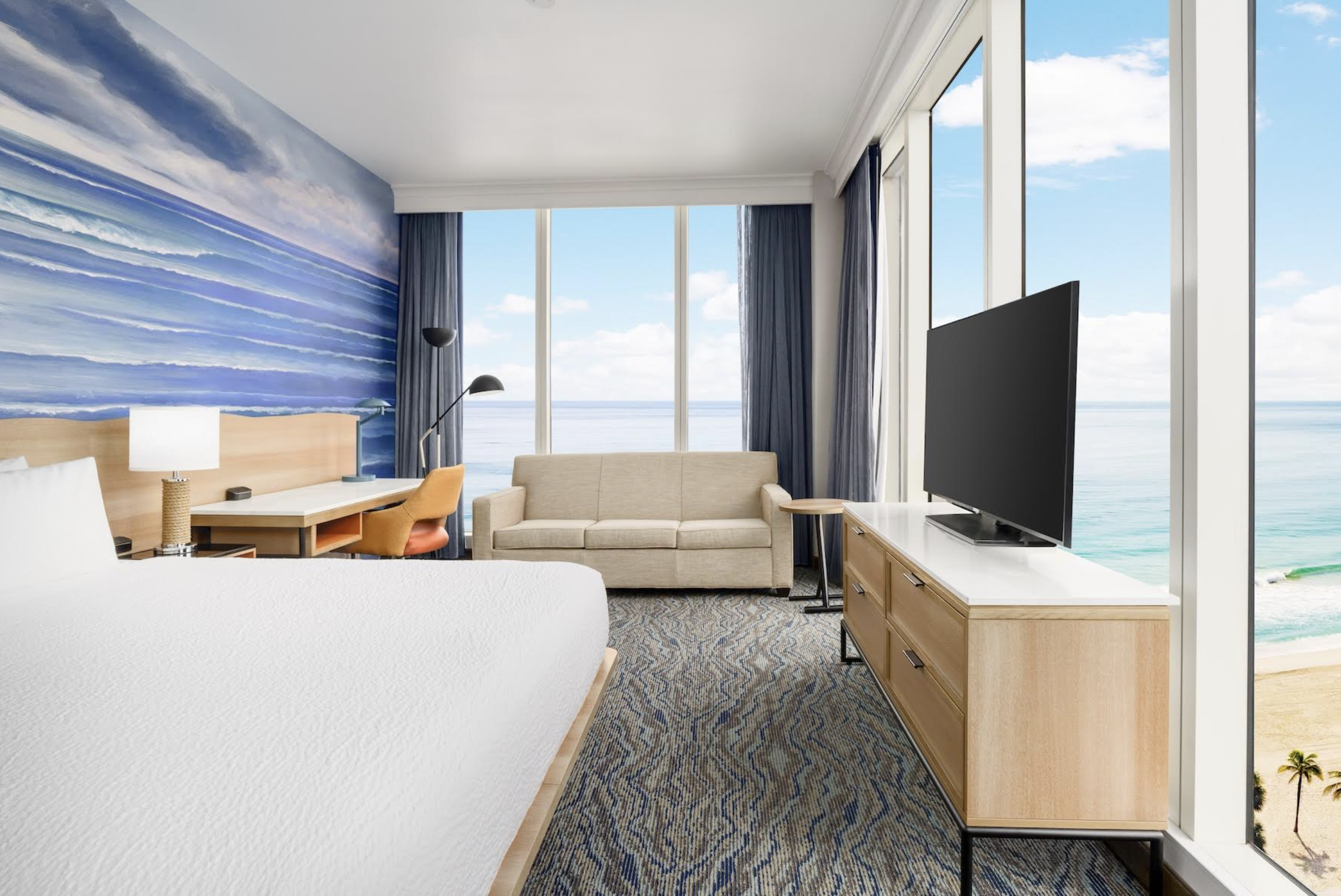 - Modern Coastal Guestrooms: Every guestroom has been redesigned with sleek aesthetics and comfort in mind. Floor-to-ceiling windows reveal views of either Fort Lauderdale Beach or the Intracoastal Waterway, paired with top-level amenities geared to leisure and business travellers alike.