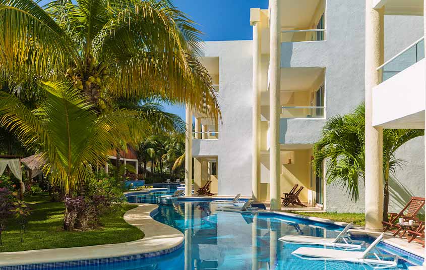 El Dorado Seaside Suites is approximately a 75-minute drive from Cancun International Airport and located between Playa del Carmen and Tulum. The new Tulum airport is expected to open sometime in 2024 which will help reduce the long transfer time.