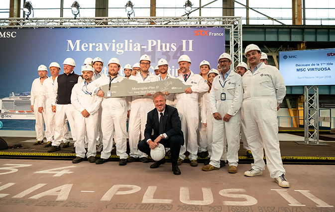 The announcement was made at a ceremony held at the Saint-Nazaire shipyard, where STX France and MSC celebrated three major ship building milestones: the steel-cutting ceremony of the 4th Meraviglia class vessel, the coin ceremony of MSC Grandiosa, and the float-out of MSC Bellissima. MSC Bellissima will be christened on March 2, 2019 while MSC Grandiosa will be christened in November 2019.