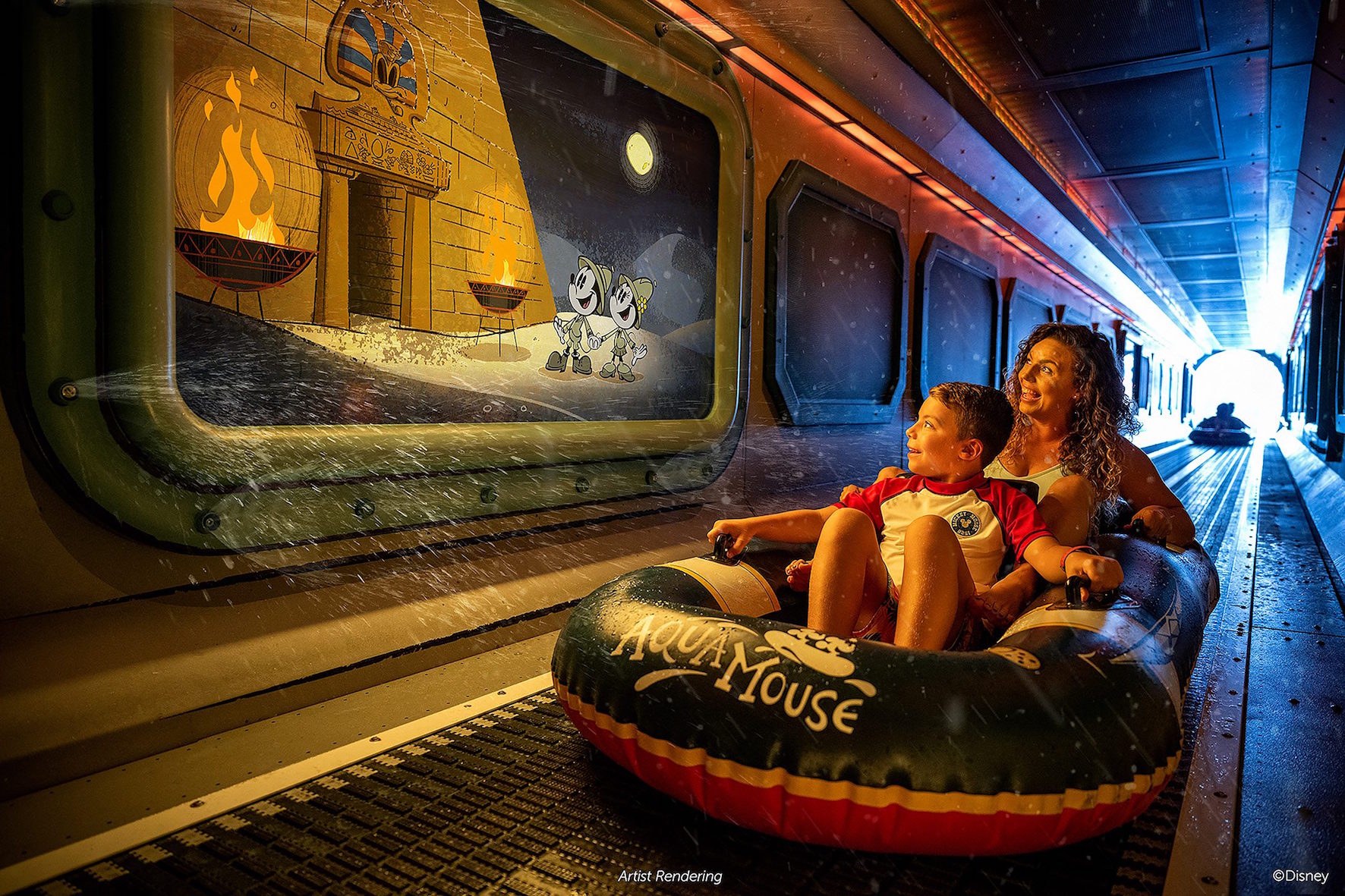 - Disney Treasure will also offer AquaMouse: Curse of the Golden Egg, Disney Cruise Line’s own attraction at sea. The water attraction is suspended high above the upper decks, propelling two-person ride vehicles through 760 feet of winding tubes, offering breathtaking views of the ocean and the ship below. Sister ship Disney Wish also offers AquaMouse, while Disney Fantasy and Disney Dream have AquaDuck, and Disney Magic has AquaDunk.