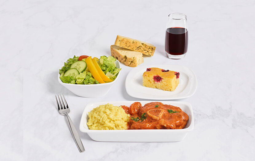 On flights to and from Europe, a choice of two complimentary hot meals will be offered to Economy Class passengers. The meal will be served with a salad, a sweet snack and a glass of wine or non-alcoholic beverage.