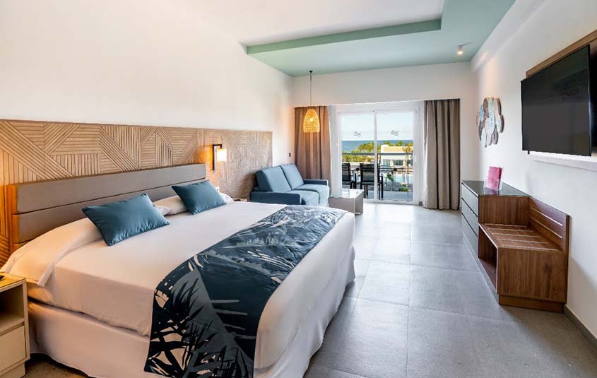 Among Riu Latino’s 594 rooms, guests can choose from standard double rooms, to suites with views of the Caribbean Sea, to luxury swimout rooms with private pools. Guests will also find six restaurants on site: Moctezuma, the main restaurant; Milan, an Italian restaurant; Geisha, an Asian restaurant, a steakhouse, the gourmet Kulinarium, and a grill buffet called Pepe’s Food. There are also five bars, including a swimup bar.