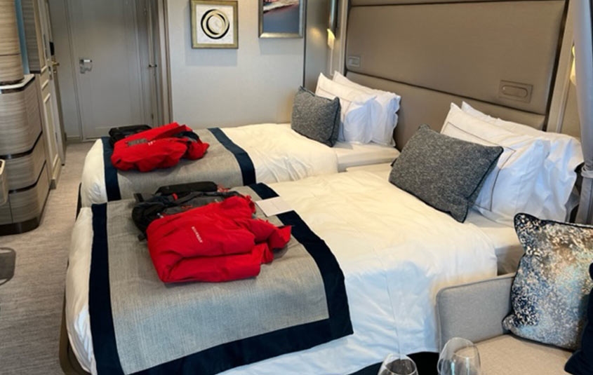 Onboard, guests will find seven suite categories, including some of the most spacious accommodations in expedition cruising, spread over eight public decks. There are also multiple restaurants, bars and lounges, an expansive spa, a two-storey solarium with a swimming pool and whirlpool, an array of indoor and outdoor observation areas, and a crew-to-guest ratio of approximately 1:1.