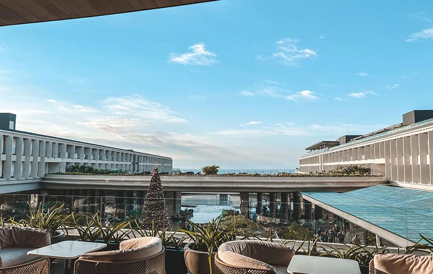 “The resort felt tucked away and luxurious, and the entrance when you pull up is quite grand. The modern architecture is sleek and has warm elements throughout. It is a very open resort with indoor and outdoor living.