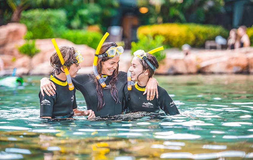 Located in the heart of Central Florida, Discovery Cove provides guests the opportunity to connect with dolphins in the Dolphin Lagoon, handfeed exotic birds in the Explorer’s Aviary, or simply relax on white sandy beaches or along Wind-Away River. As part of the all-inclusive experience, guests also enjoy a freshly prepared breakfast, lunch and all-you-can-eat snacks throughout the day, plus unlimited gourmet coffee, ice-cold beverages and beer and wine. Parking, lockers, wetsuits and swim gear are also included.