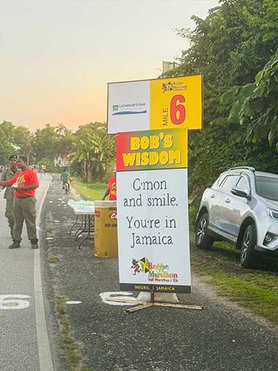 Meanwhile the blast of Bob Marley music accompanying you each step of the way and the mile marker signs with inspirational Marley quotes make this Jamaican race experience unique.