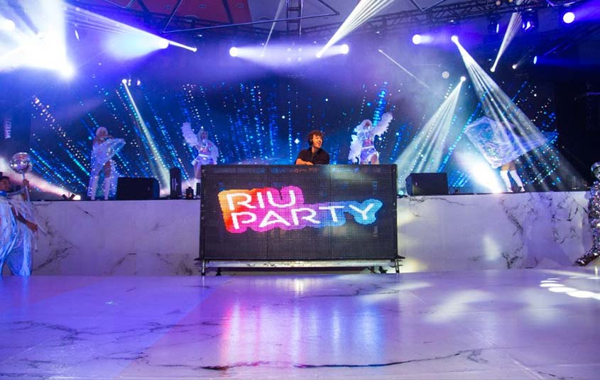 Following dinner, the famed Riu Party kicked off with music, dancing, acrobatics, light shows, cold fireworks and confetti, marking the first time since its launch in 2018 that it left the confines of RIU’s hotels. Guests were able to experience 15 minutes of what the Pink Party, White Party, Neon Party and Jungle Party entail for RIU guests. Just as in the 20 hotels where Riu Parties are held, guests danced with balloons and glow sticks while listening to the Live Band Covers concert.