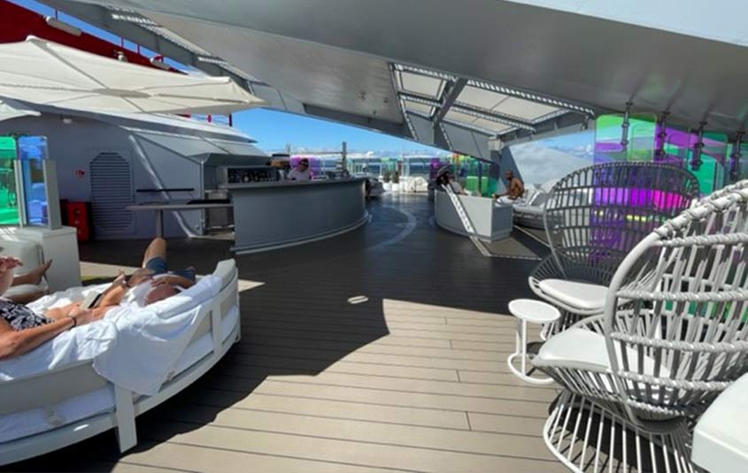 Having departed Oct. 5 from Miami, the ‘Raise your Sales’ fam trip included the full Virgin experience onboard, including identification wristbands that served as agents’ ID cards, room keys and payment cards both on the ship and at the private Bimini Beach Resort, the fabulous gym, spa treatments and Rockstar Suites that feature private access to upper decks including ‘Richard’s Rooftop.’ Agents were also able to dine in the Galley, a modern-day food court concept with 13 specialized restaurants that replaces the traditional buffet, and enjoy the private Beach Club on Bimini Island in the Bahamas, home to two beautiful pools and a restaurant.