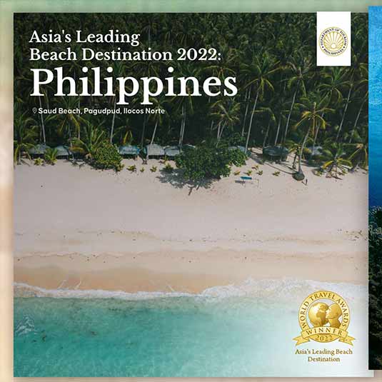 “The Philippines is a beautiful country and you (WTA) having given these awards is such an affirmation to all of our tourism stakeholders and workers who have greatly sacrificed throughout the pandemic,” said Department of Tourism (DOT) Secretary Christina Garcia Frasco. “We look to the future with hope that through our combined efforts under the Marcos Administration that has identified tourism to become a major pillar for economic recovery, that not only will we survive the pandemic but we will thrive, we will endure and we will get back stronger than ever.”