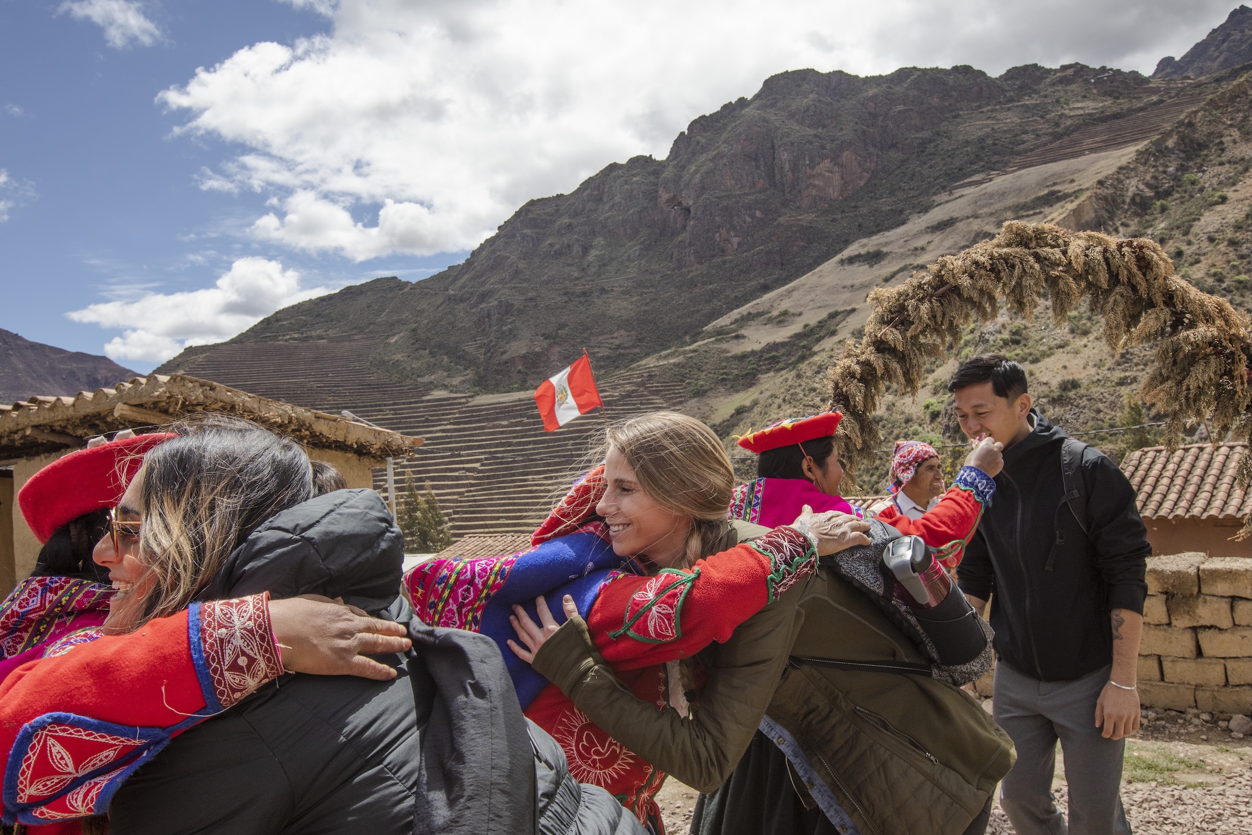 Welcome hugs at a pottery co-op in Peruʻs Sacred Valley