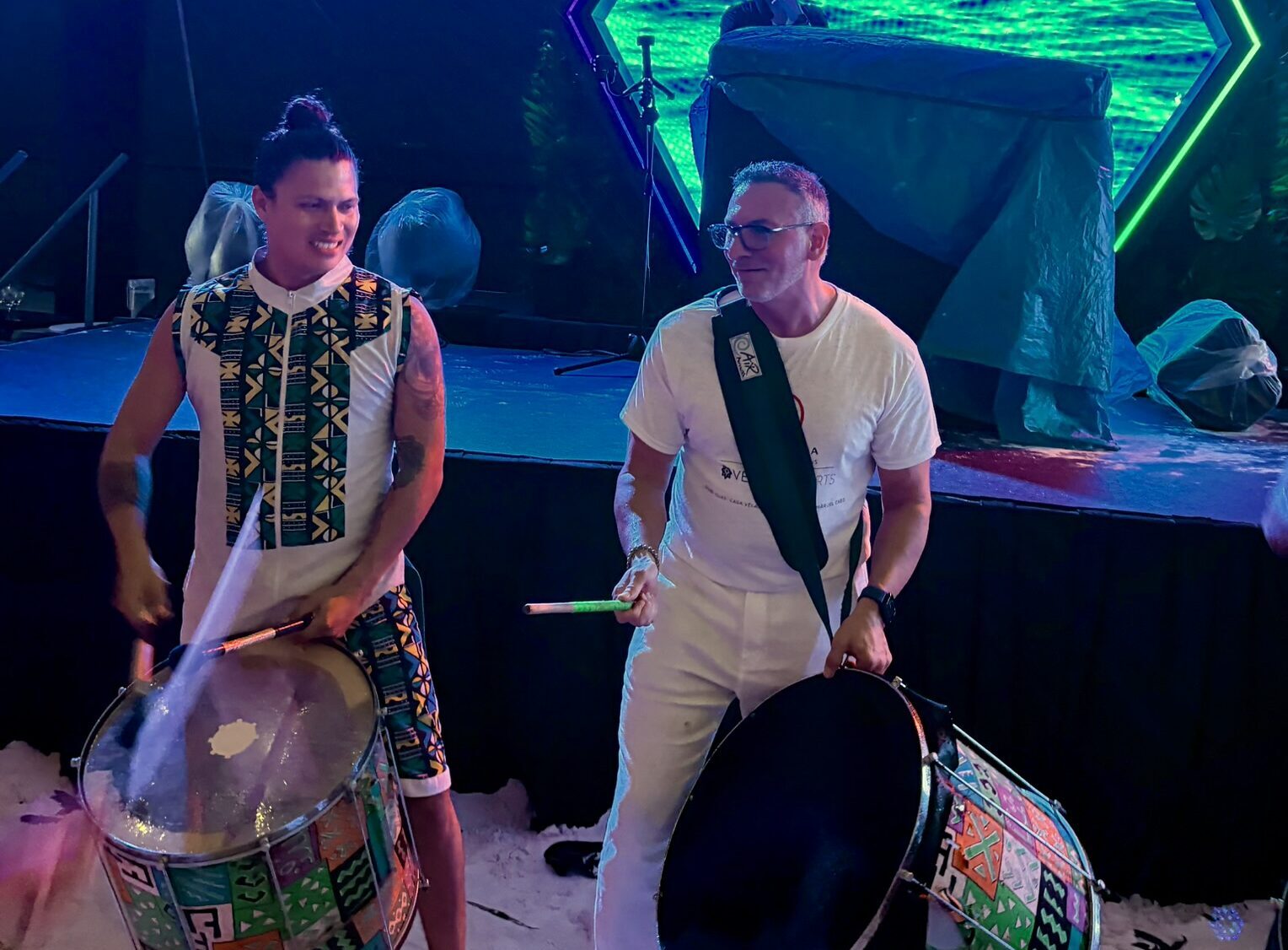 - Nino Montagnese playing percussion with the band during the closing party