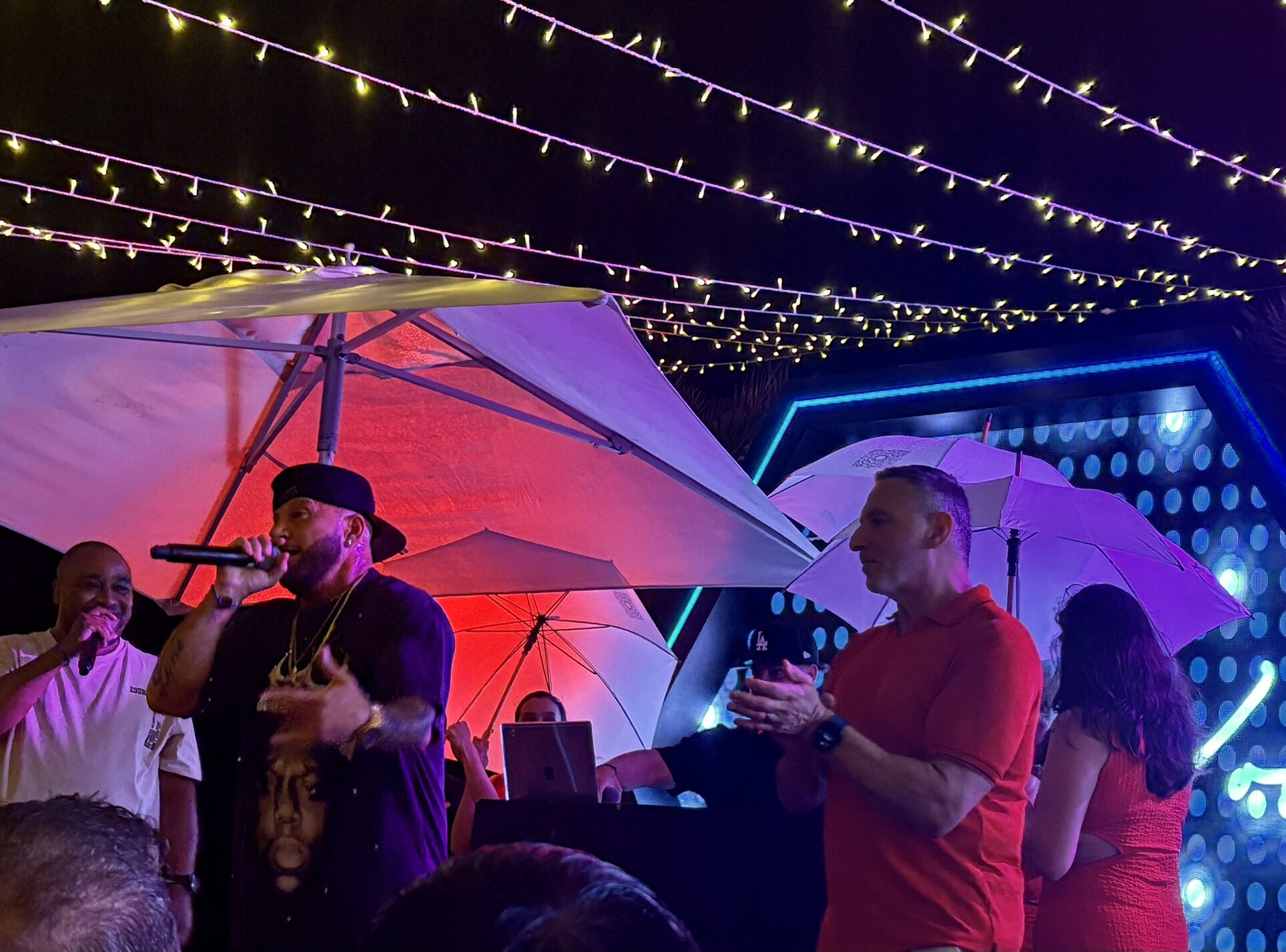 He was quickly proven right. As soon as singer Karl Wolf took the stage, most of the guests stood up, singing and dancing in the rain throughout his performance. “You have to admit, there’s something magical about dancing in the rain,” Montagnese told the crowd.