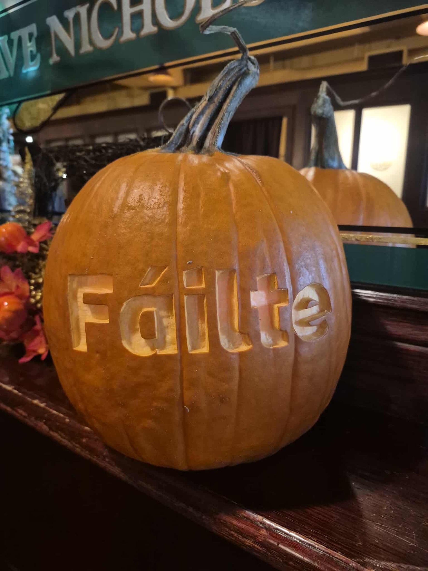 As Moffatt shared, holding up a carved turnip – yes, a turnip – the end of October “is when the Irish and the ancient Celts thought that the veil between this world and the next was the thinnest. That’s when the spirits came out, and we wanted to protect our crop. It’s a harvest festival, so to protect our crop, we used to carve these guys. No one’s going near any crops that these guys are around. And we used to dress up in costume, and we used to wear animal skins and creepy costumes to protect our crop. And those are all the traditions that we know and love today.”