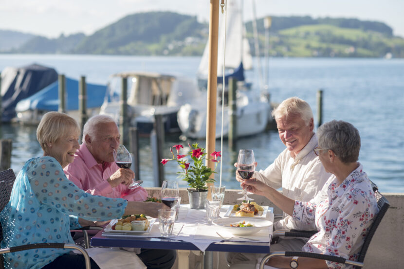 Lead image caption: Al fresco dining with Insight Vacations, Lake Lucerne, Switzerland — Credit TTC Tour Brands