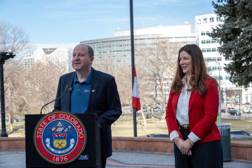 Lead image caption: Governor Polis and Canada Consul General in Denver Sarah Quigley speak at Colorado Canada Friendship Day