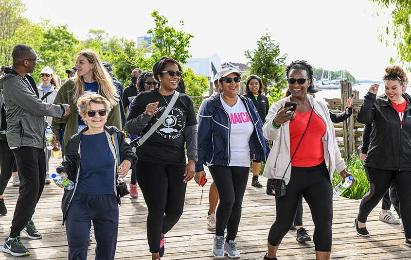 The 5km route included a picturesque waterfront stroll from Toronto’s Palais Royale along the boardwalk to the Palace Pier Park Bridge (also known as the Humber Bay Arch Bridge) and back. In addition, all participants were treated to a delicious post-walk lunch, complete with fried fish and festivals.