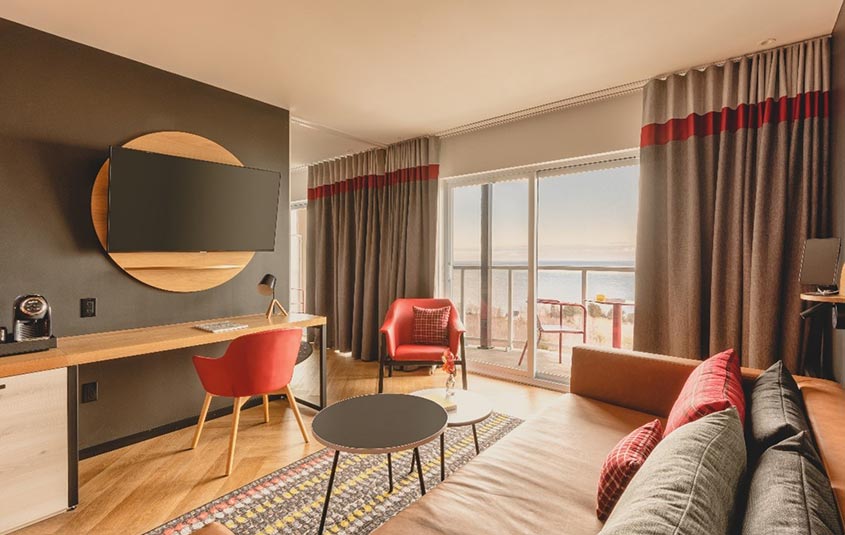 Guests can stay in one of the 302 rooms, including Deluxe Room and Superior Room accommodations. With an outside facing bed view, the Deluxe Room offers bright contrasting colours of sunshine yellow and cardinal red. And with the backdrop of Québec’s wide-open spaces, the Superior Room features shades of winter white and dusk blue to highlight the local colours.