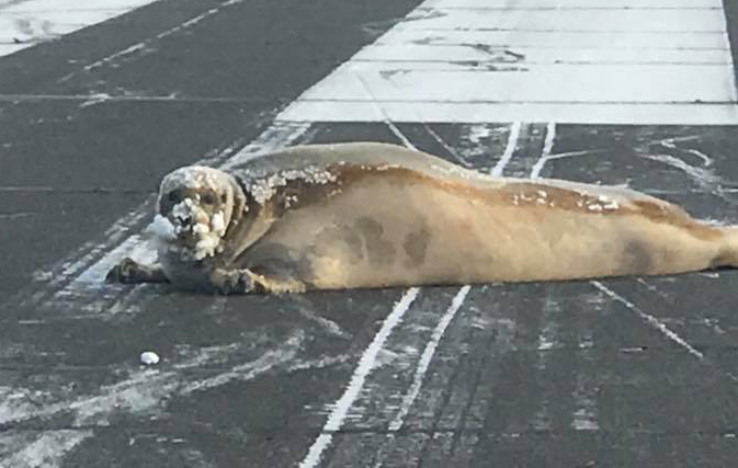 The workers have seen birds, caribou, polar bears and musk ox on the runway, but the seal sighting was a first, Bailey said.