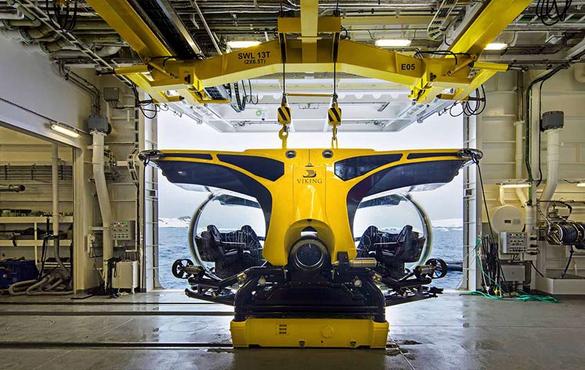 The Hangar, for example, houses a fleet of polar-tested kayaks, military-grade zodiacs, two 12-seater convertible Special Operations Boats (SOBs) and two six-guest submarines with 270-degree spherical windows. It also features an industry-first in-ship marina that makes it easy to embark and disembark while sheltered from the elements.