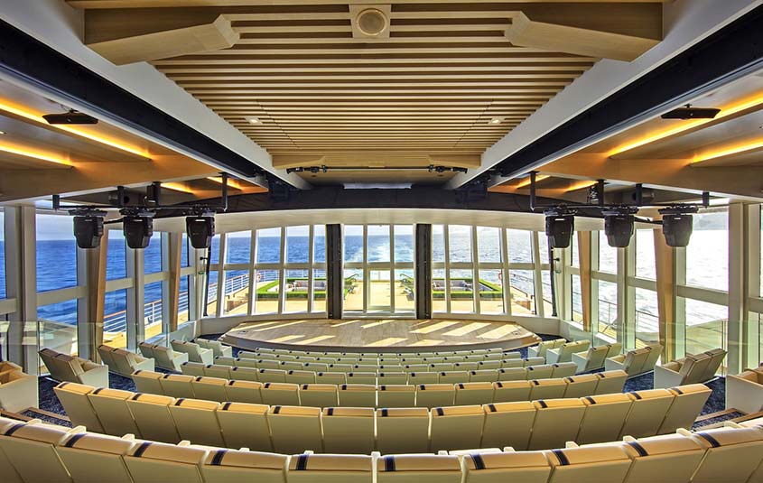 Torstein Hagen, the chairman of Viking Cruises, made a surprise appearance during the sailing between San Juan, Puerto Rico, and New York City, where he gave an overview of the company’s plans in The Aula, a panoramic auditorium inspired by the University of Oslo’s ceremonial hall (and the former venue for the Nobel Peace Prize ceremony). A 4k laser-projected screen retracts to expose floor-to-ceiling windows and 270-degree views.